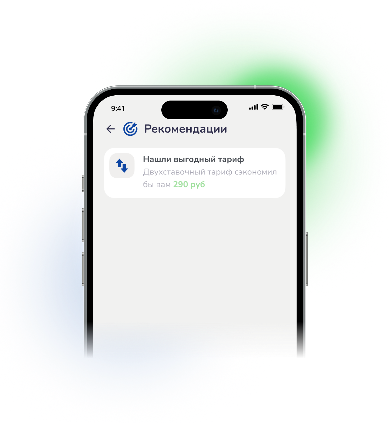 Вы видите потребление в рублях и получите предложение сменить тариф энергии в зависимости от стиля жизни